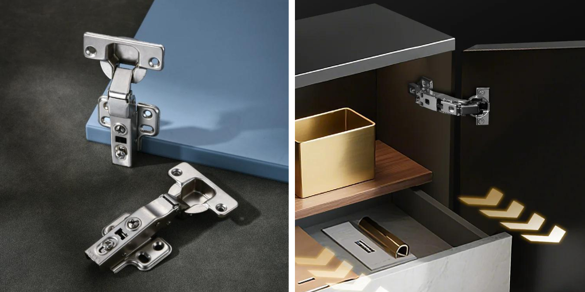 Dobradiças silenciosas com fecho suave evitam ruídos fortes de colisão.